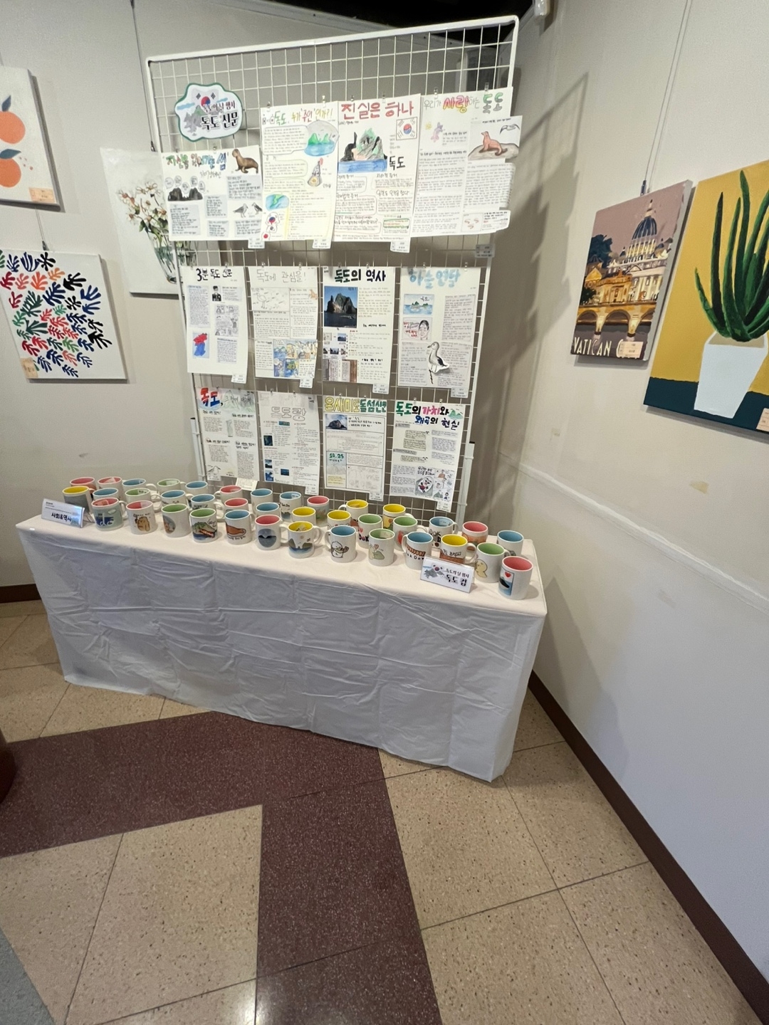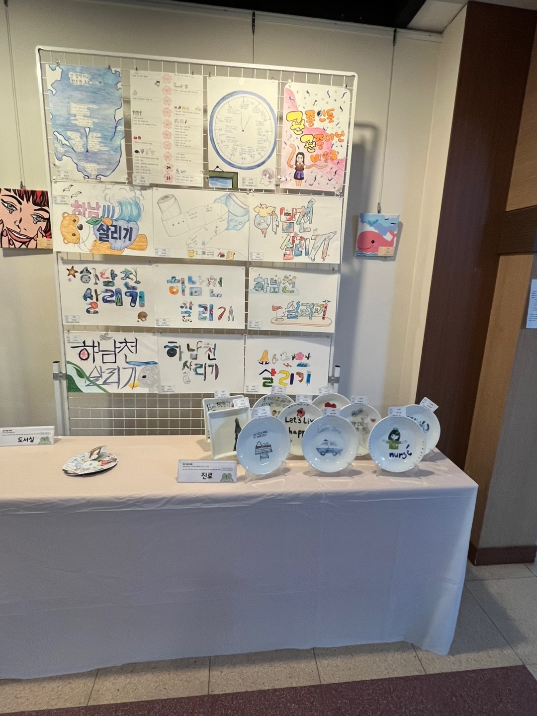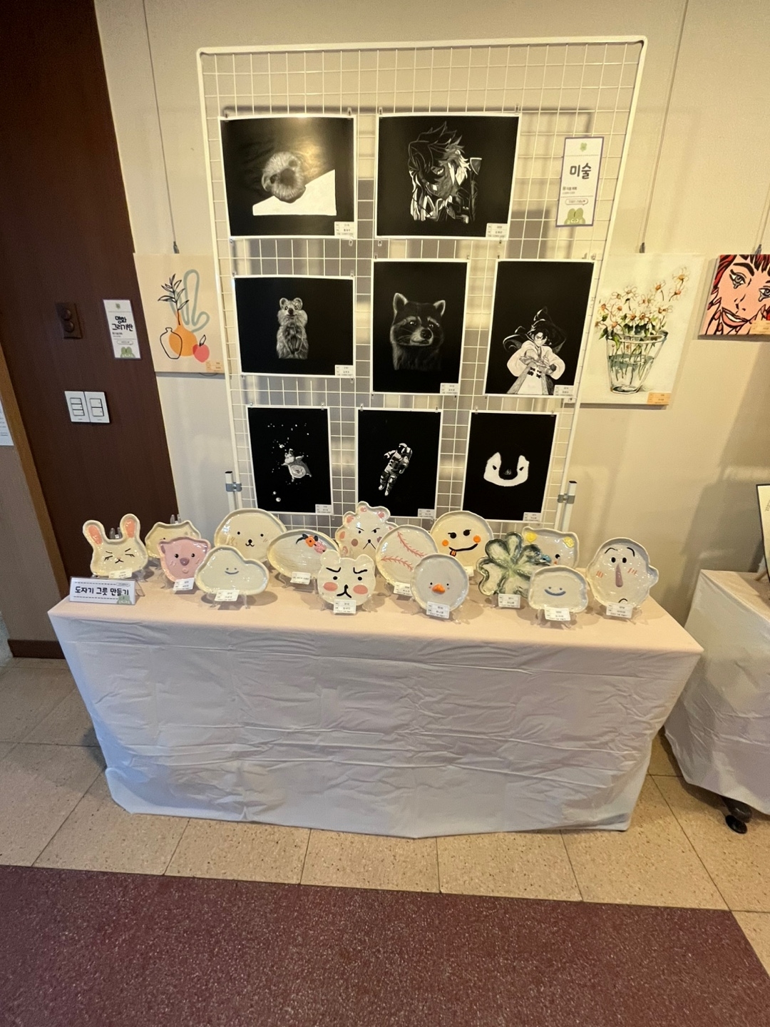 아래 사진은 그림과 학생들이 직접 만든 접시. 등 공예품입니다.