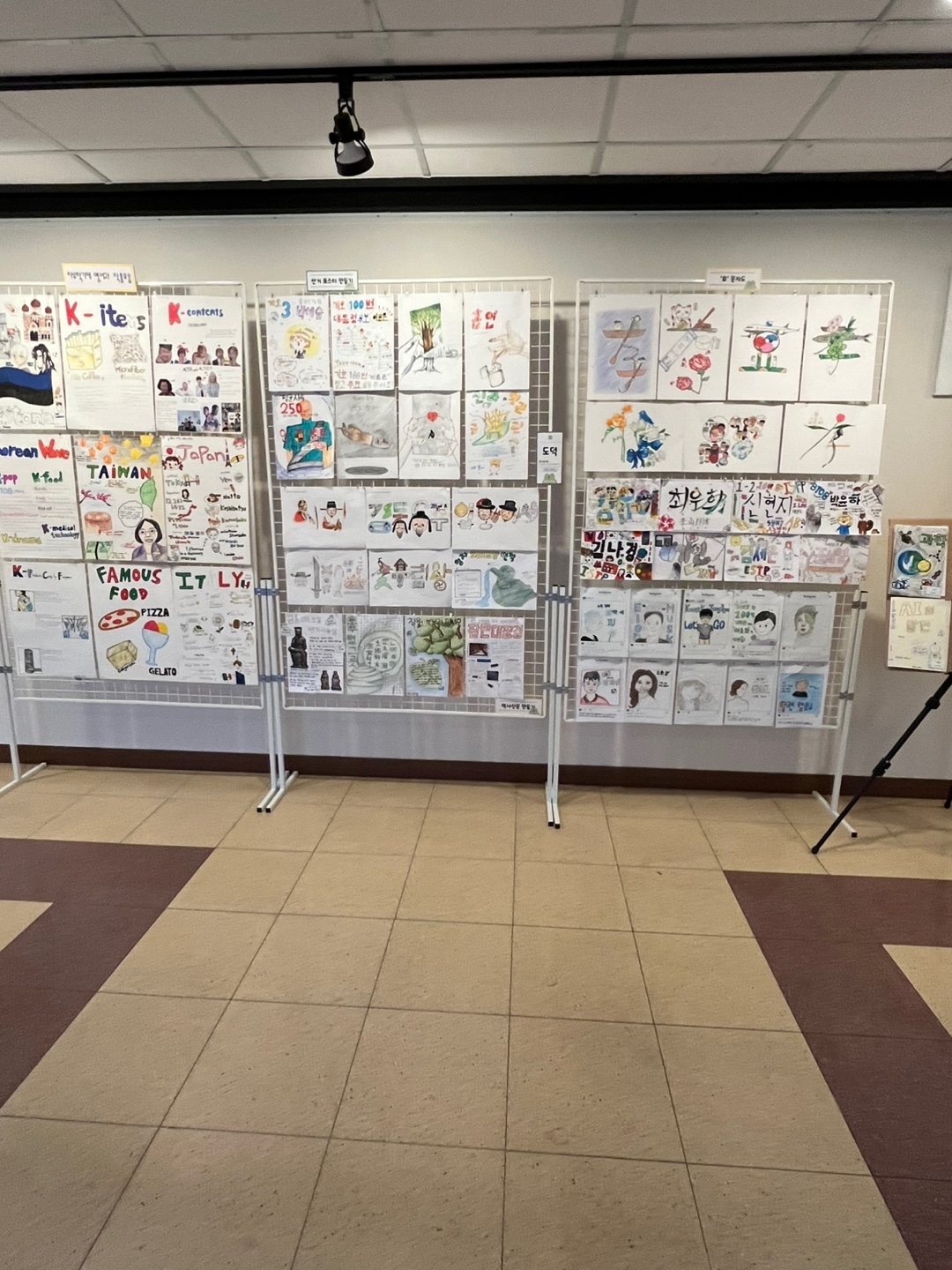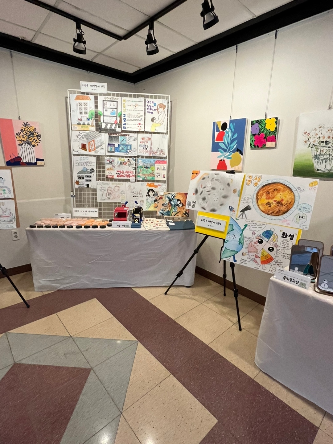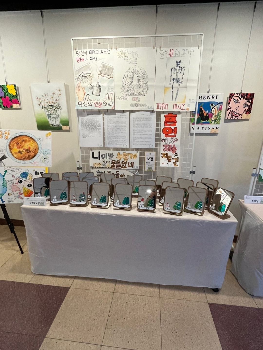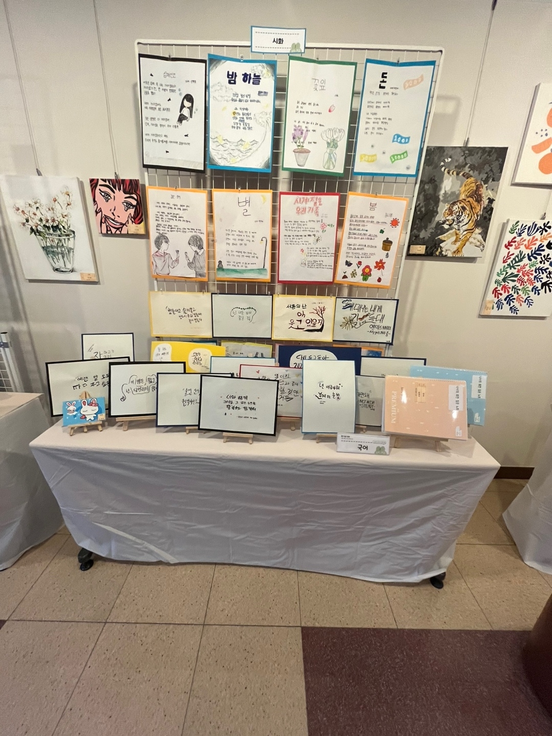 아래 사진은 그림과 학생들이 직접 만든 접시. 등 공예품입니다.